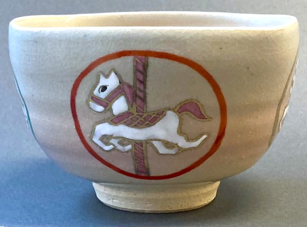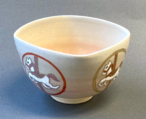 【茶道具】四方 丸紋 回転木馬 茶碗 *馬*午*干支