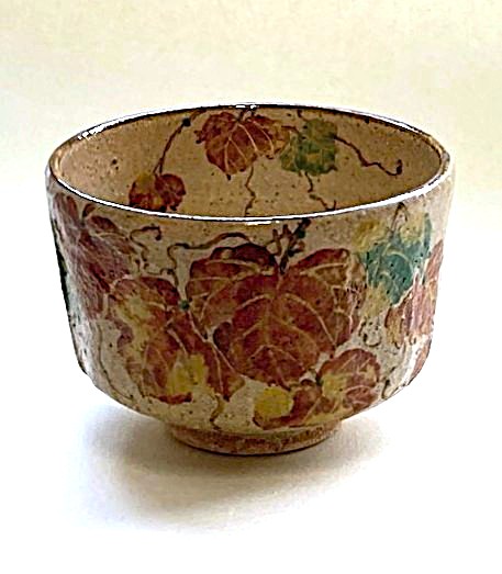 【茶道具】灰釉 蔦図 茶碗 *中村良二* 秋峰窯